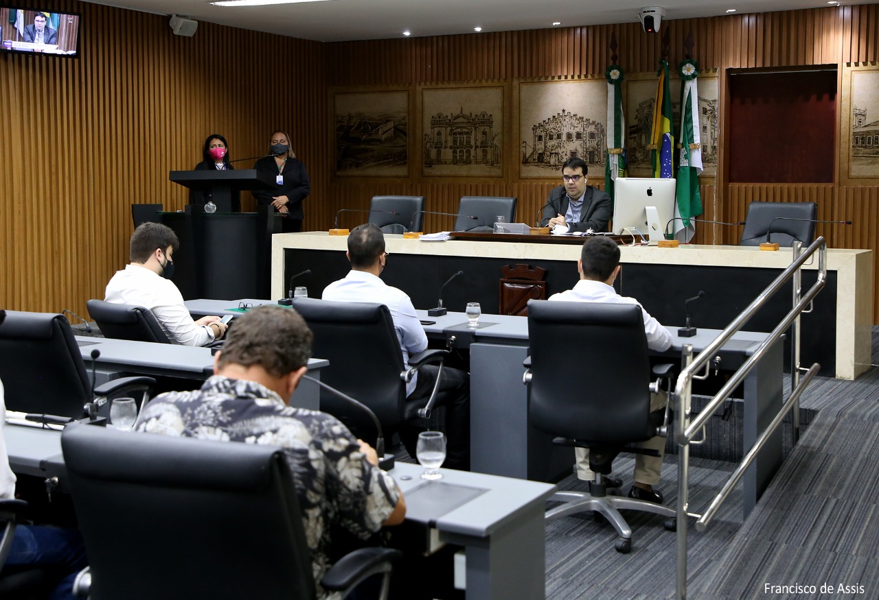 A vereadora Divaneide Basílio (PT) e os vereadores Robson Carvalho (PDT) e Pedro Gorki (PCdoB) participaram remotamente da reunião, que contou ainda com a presença dos vereadores Eribaldo Medeiros (PSB) e Anderson Lopes (SDD).