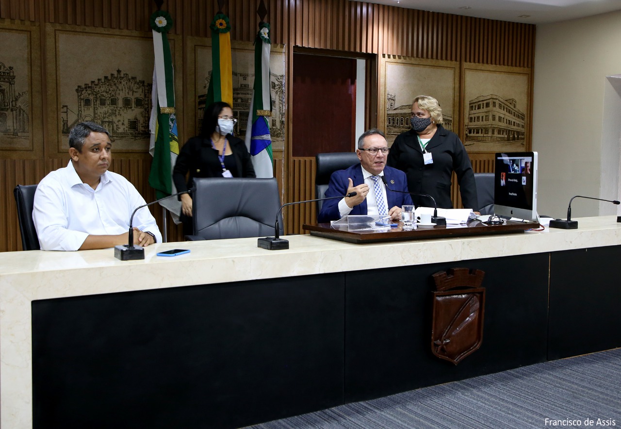Os vereadores Nivaldo Bacurau (PSB), Robério Paulino (PSOL) e Robson Cavalho (PDT) participaram virtualmente da reunião.