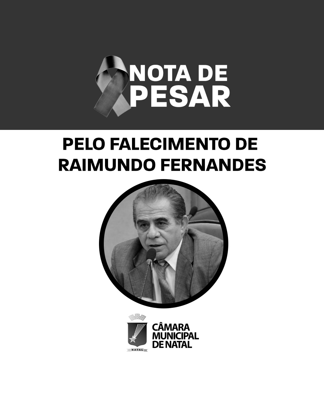É com profundo pesar que a Câmara Municipal de Natal, em nome do seu presidente, vereador Eriko Jácome, e de todos os parlamentares e servidores, lamenta o falecimento do ex-deputado estadual Raimundo Fernandes, ocorrido na tarde desta quinta-feira (30), na capital potiguar, aos 81 anos.
