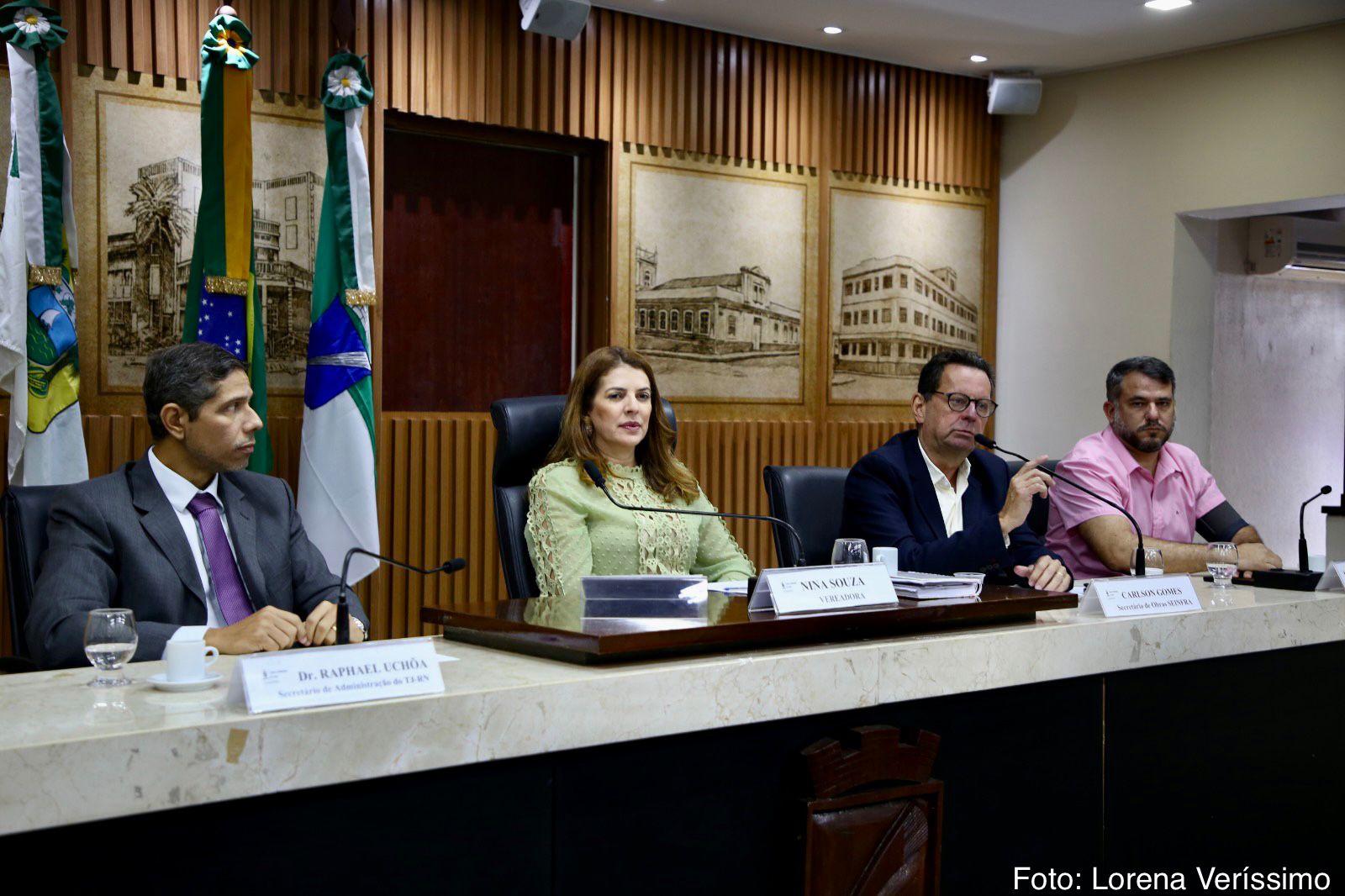 As obras do Túnel de Macrodrenagem da Arena das Dunas e da recuperação da Avenida Jerônimo Câmara foi o assunto discutido na audiência pública realizada nesta sexta-feira (12) na Câmara Municipal de Natal. A proposição foi da vereadora Nina Souza (PDT) e contou ainda com a participação dos vereadores Felipe Alves (União Brasil), Herberth Sena (PSDB) e da vereadora Camila Araújo (União Brasil).