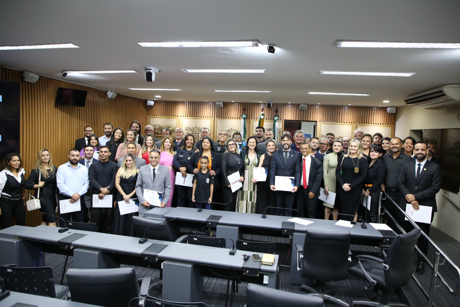Por proposição da Frente Parlamentar da Defesa Social e Enfrentamento da Violência na Região Metropolitana de Natal, presidida pela vereadora Camila Araújo (União Brasil), a Câmara Municipal de Natal homenageou pela primeira vez, nesta segunda-feira (22), os policiais penais.