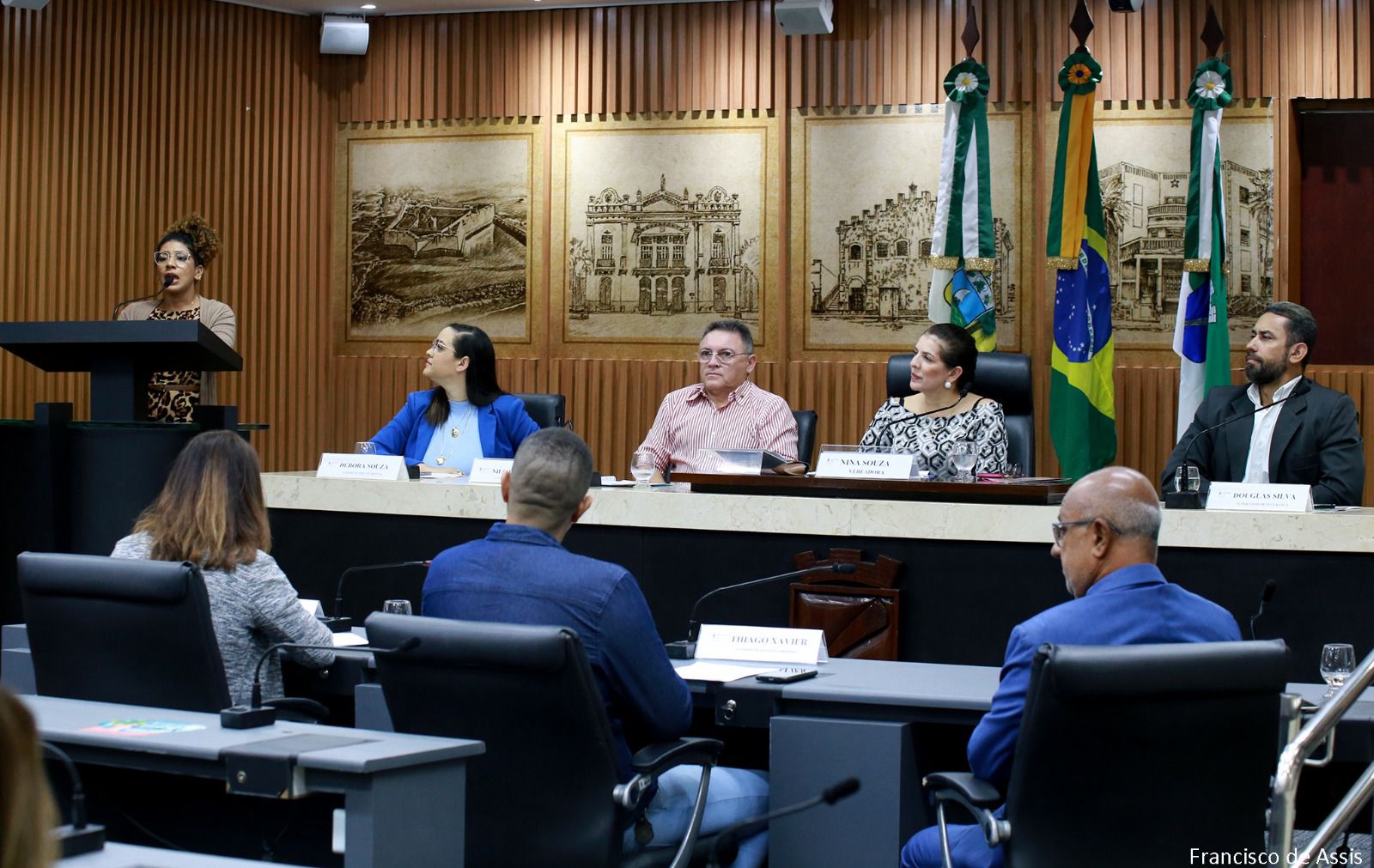 Os vereadores Nivaldo Bacurau (PSB), Camila Araújo (União Brasil) e Felipe Alves (União Brasil) também participaram da audiência.
