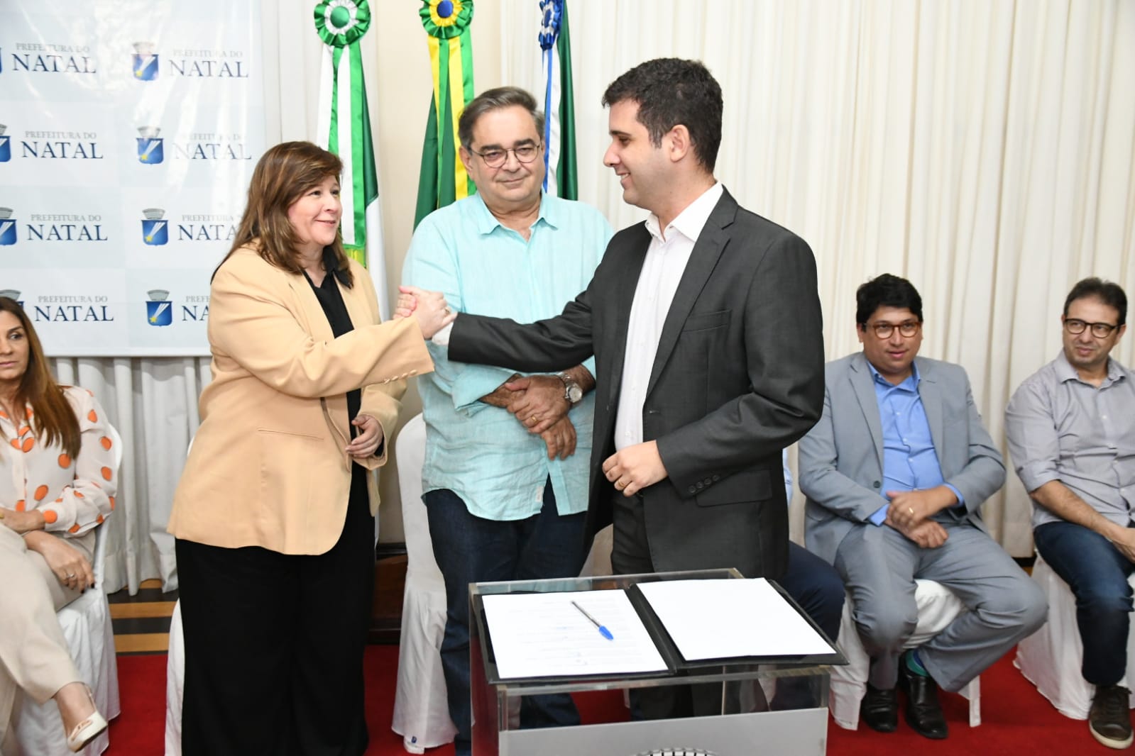 O prefeito de Natal, Álvaro Dias, e a secretária municipal de Turismo, Ohana Fernandes, empossaram, nesta terça-feira (22), no salão nobre do Palácio Felipe Camarão, os novos membros do Conselho Municipal de Turismo para o biênio (2023/2025). Na oportunidade, tomaram posse os 25 membros, titulares e igual número de suplentes, com representantes de entidades governamentais e não-governamentais, todos com direito a voto. A Câmara de Natal continua assento no colegiado, através do vereador Felipe Alves.