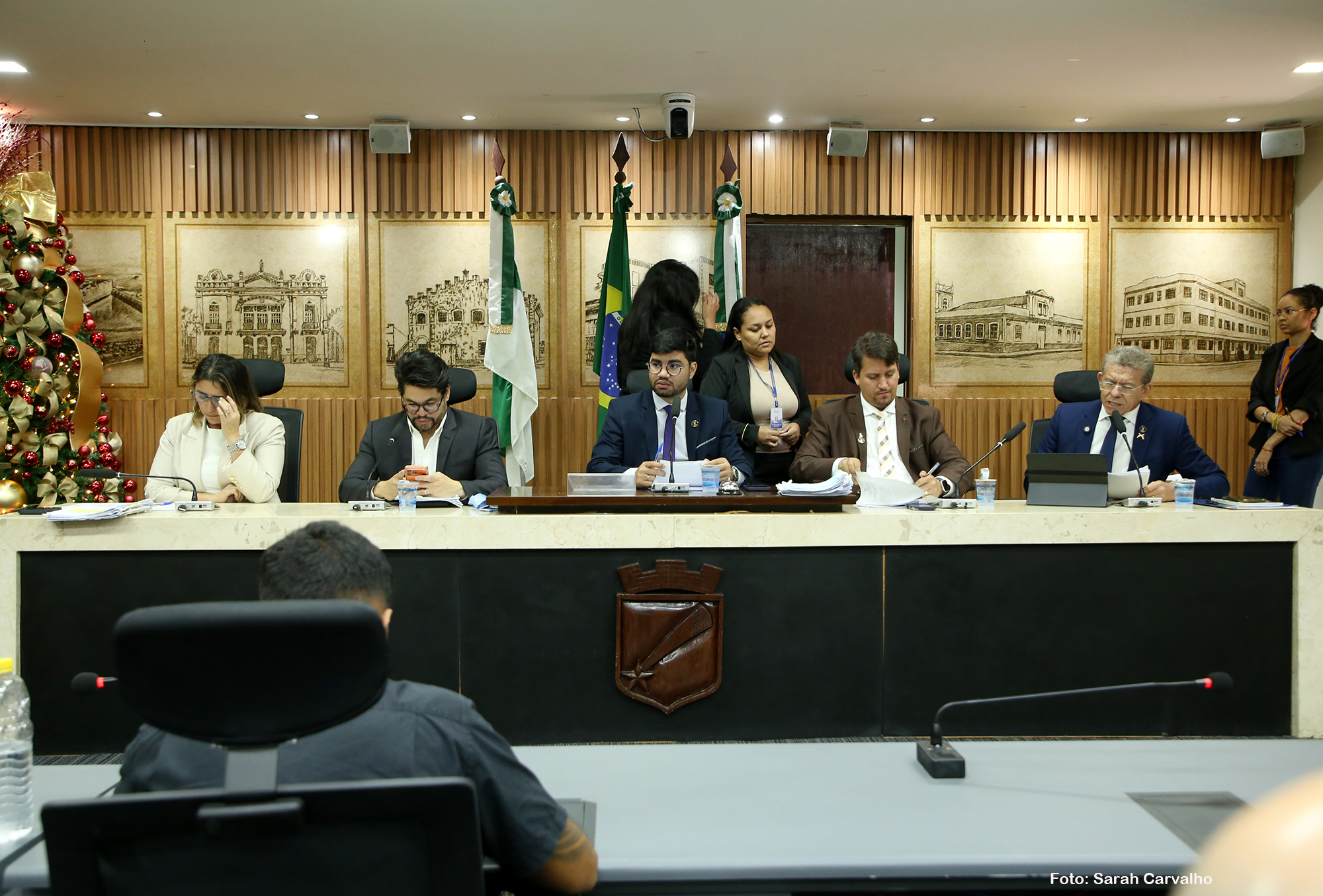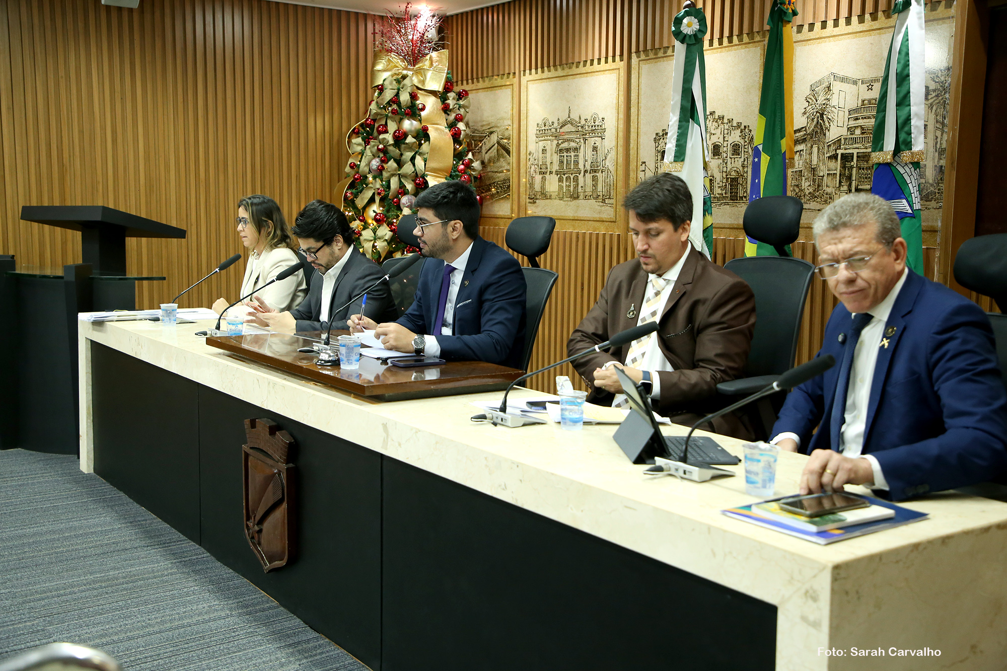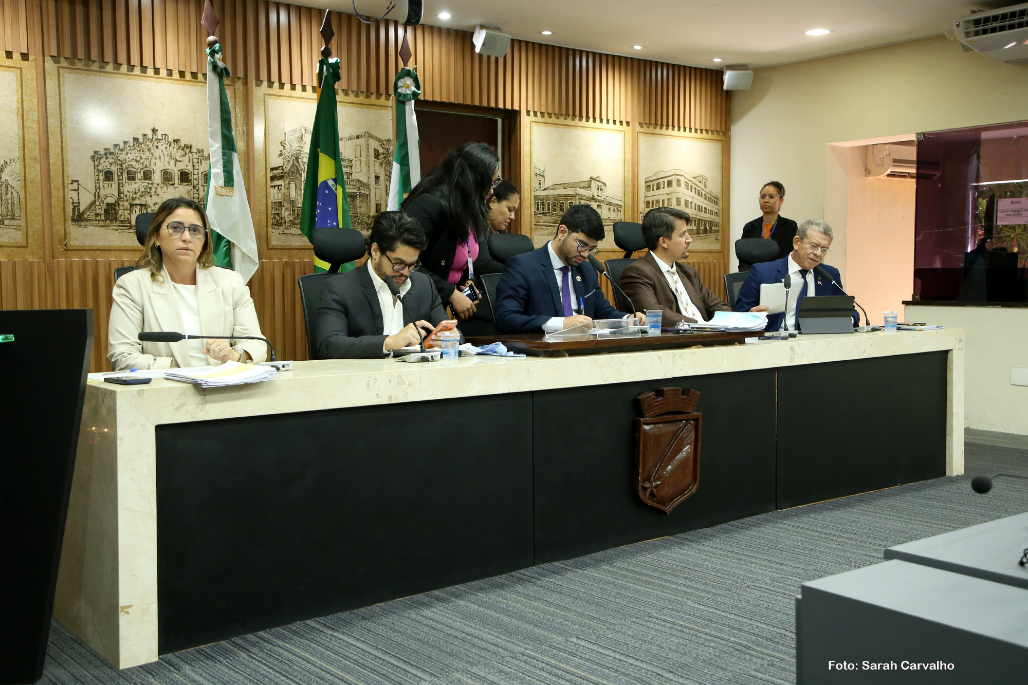 Além do vereador Daniell Rendall e da vereadora Samanda Alves, os parlamentares Léo Souza (Republicanos), Pedro Henrique (PP) e Subtenente Eliabe compuseram a mesa desta reunião da Comissão de Finanças, Orçamento, Controle e Fiscalização.
