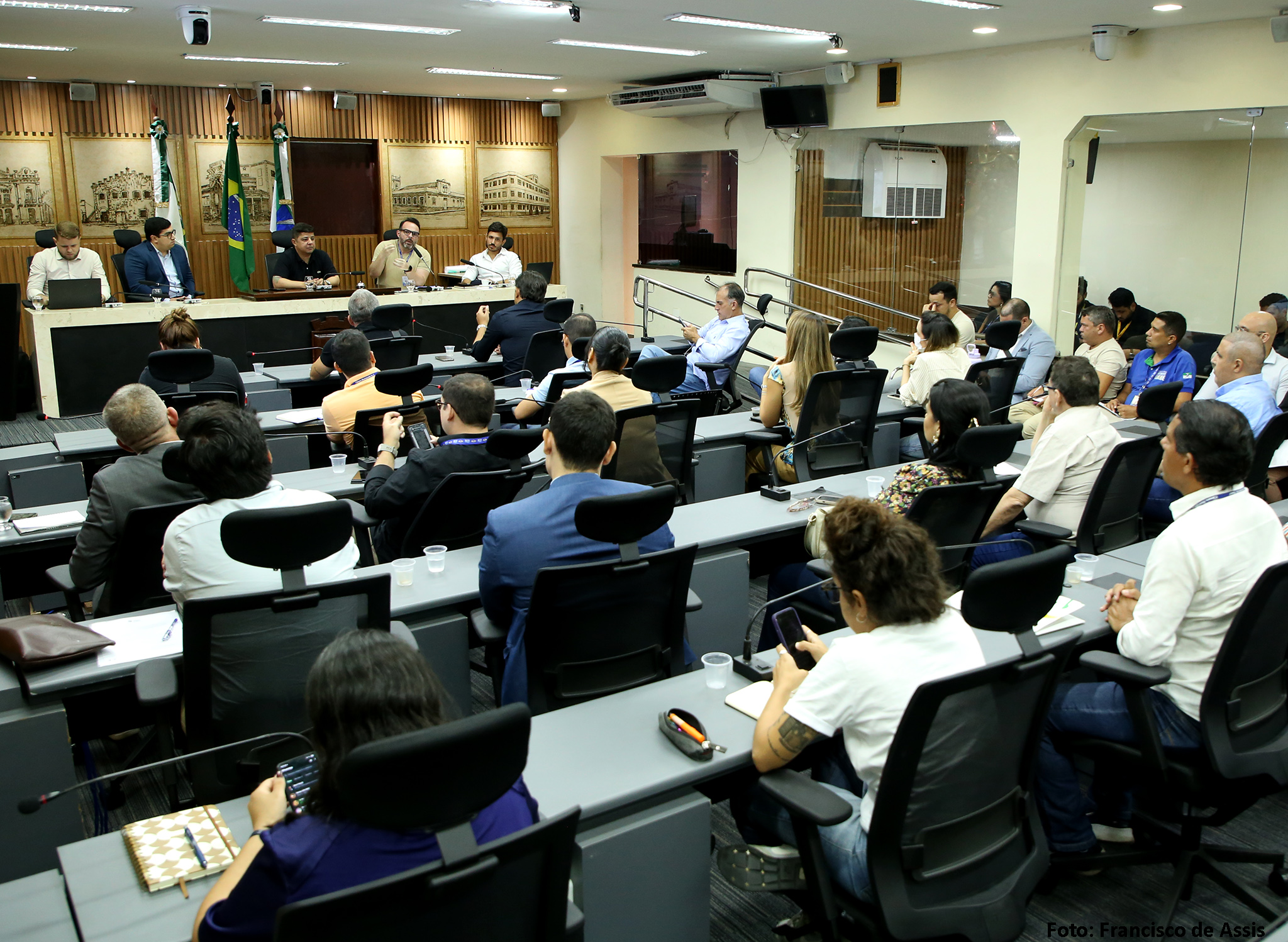 A reunião foi presidida pelo vereador Daniel Santiago (PP) e também contou com a participação do procurador Leonardo Scherman, da CMN, e do
