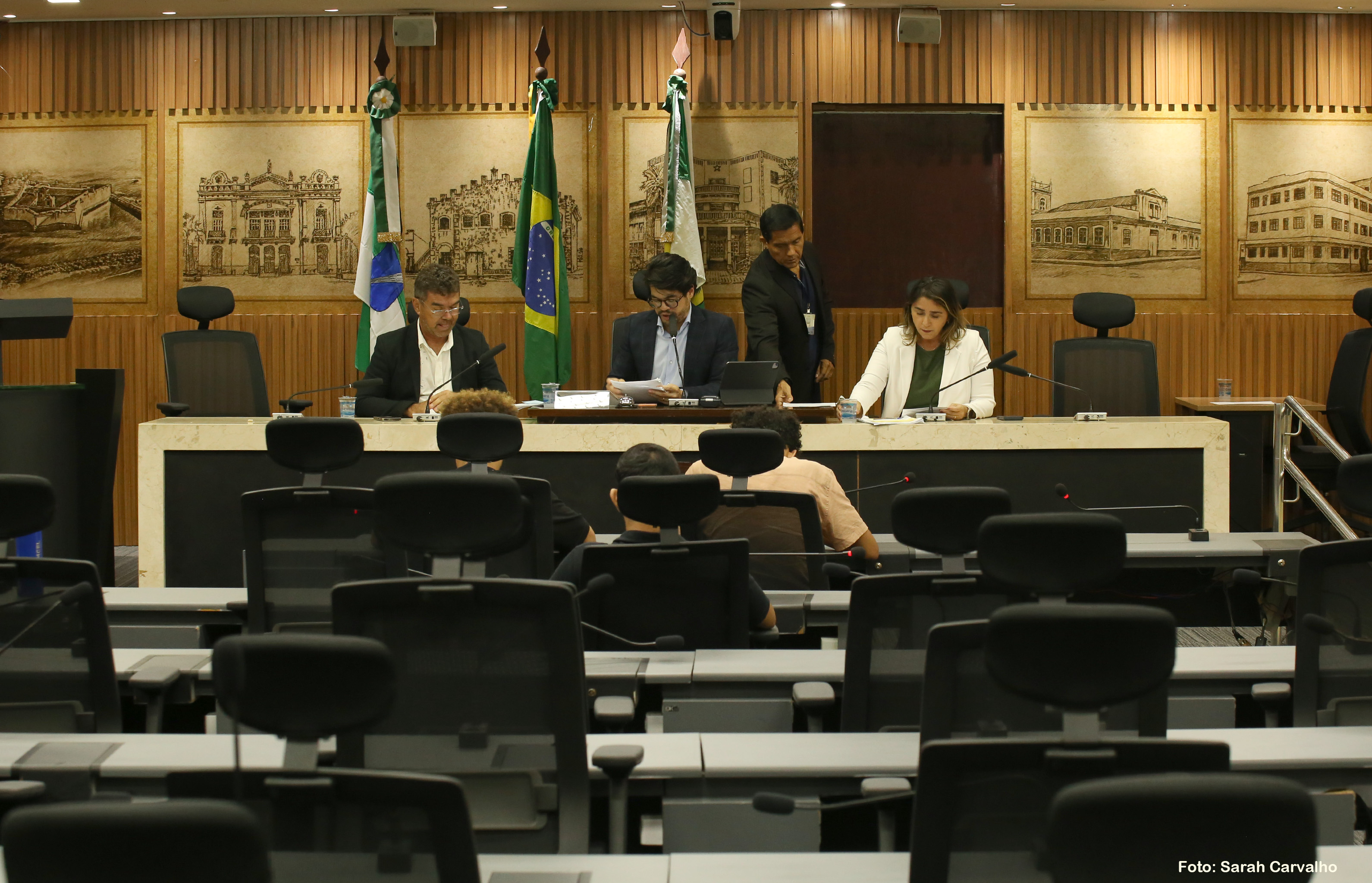 Estiveram presentes na reunião da Comissão de Transporte, Legislação Participativa e Assuntos Metropolitanos os vereadores Eribaldo Medeiros, Léo Souza, Matheus Faustino (União) e Samanda Alves (PT).