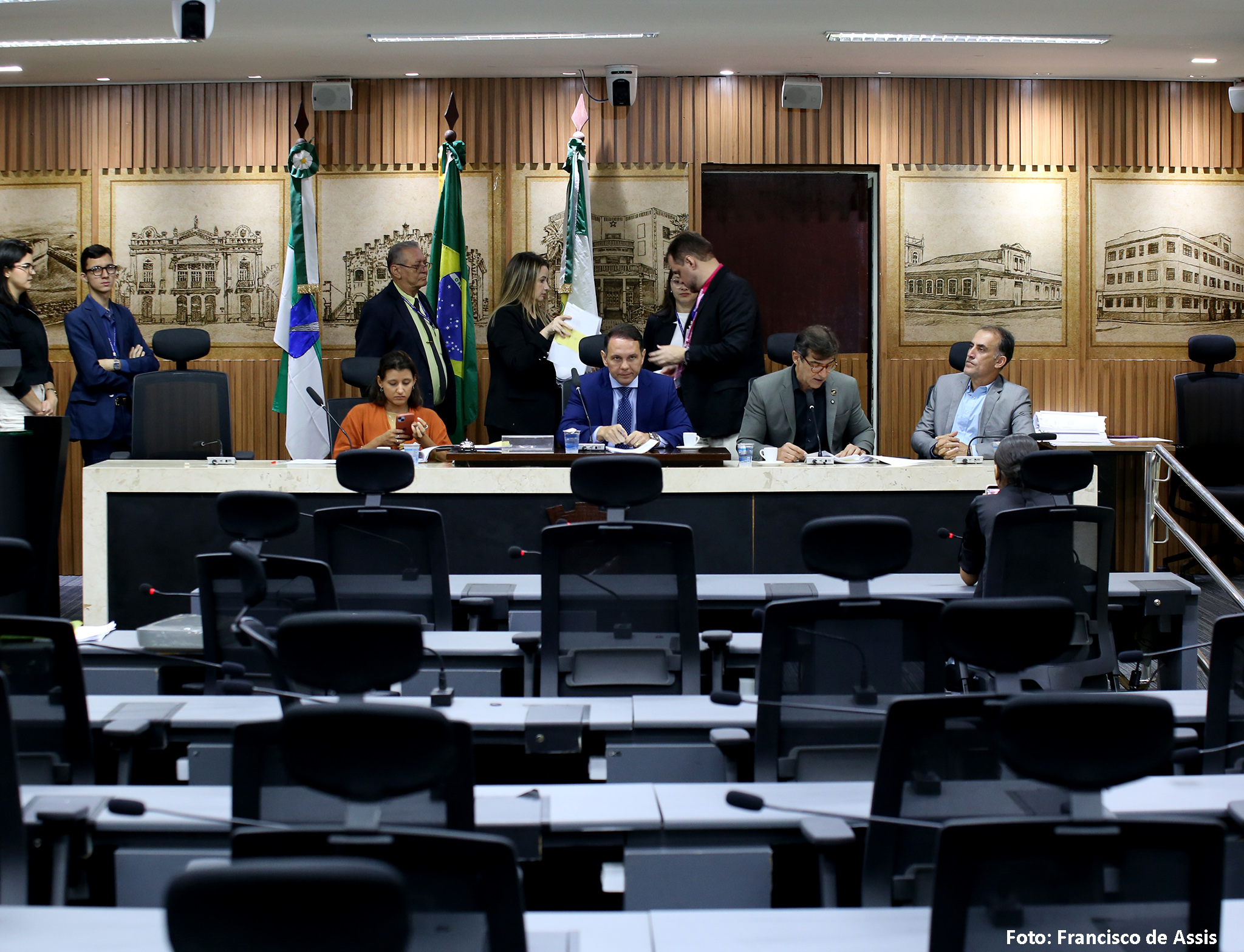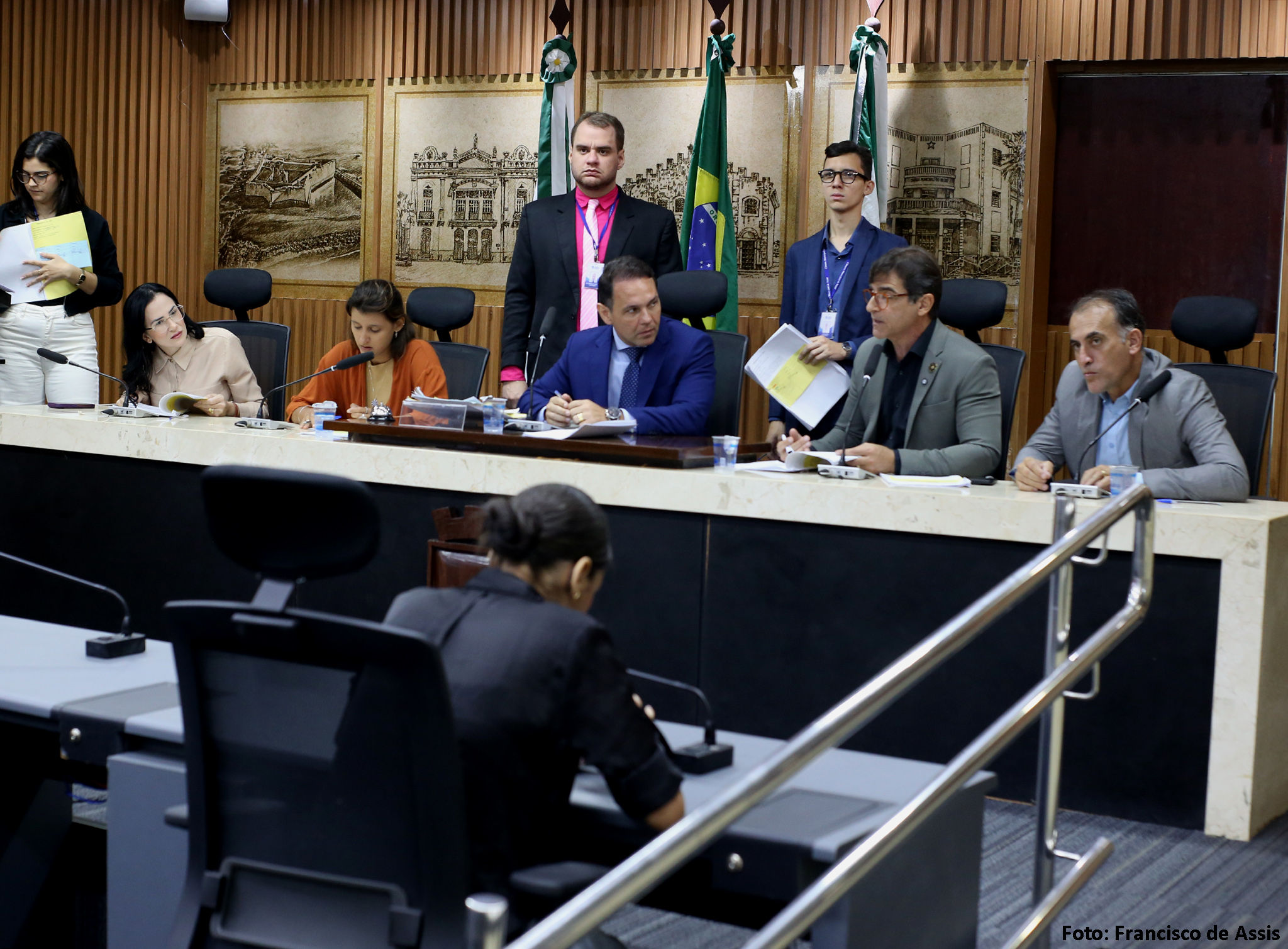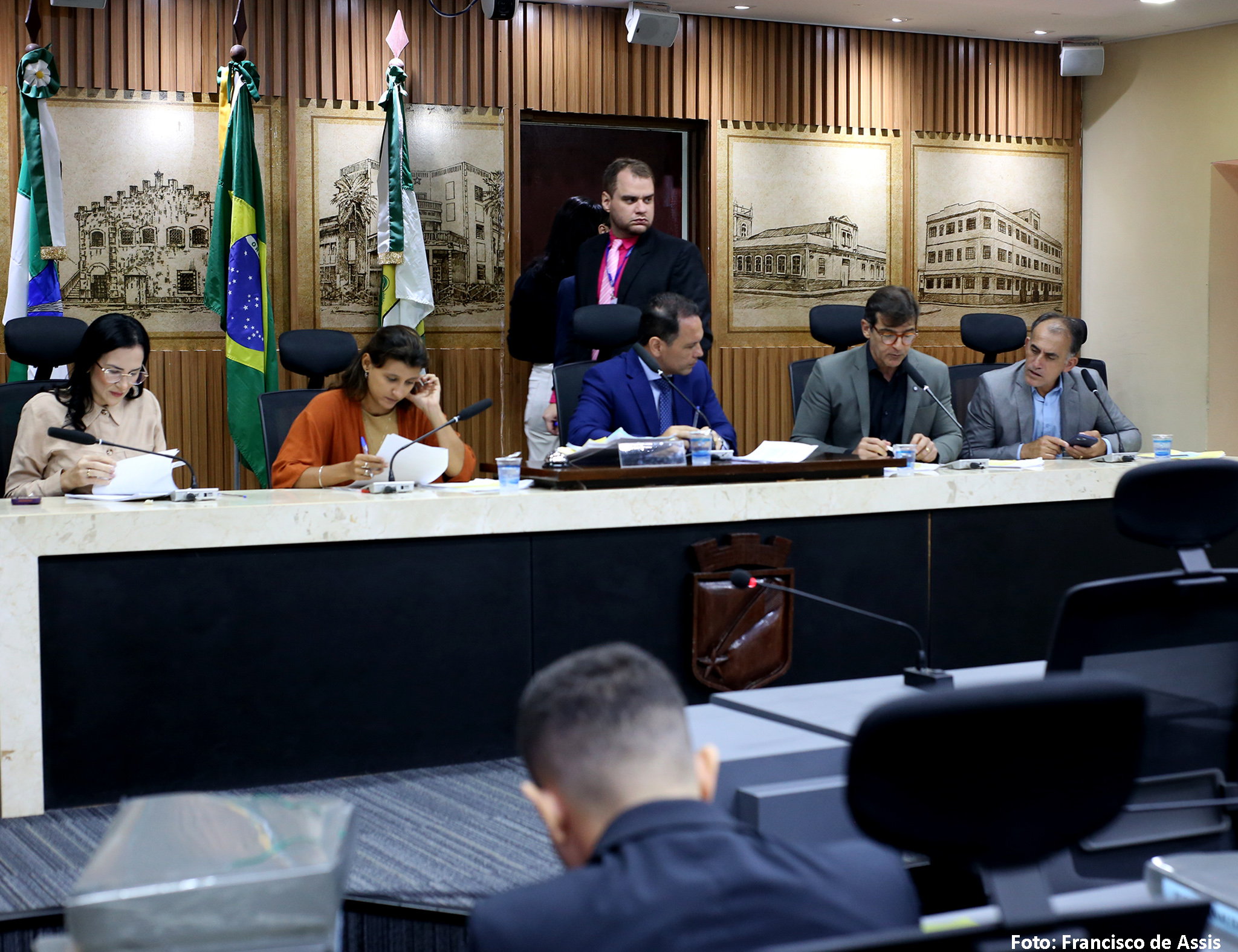Além de Brisa Bracchi e de Kleber Fernandes, a reunião da Comissão de Legislação, Justiça e Redação Final contou, ainda, com a presença da vereadora Camila Araújo (União Brasil), e dos vereadores Fúlvio Saulo (Solidariedade) e Preto Aquino (Podemos).