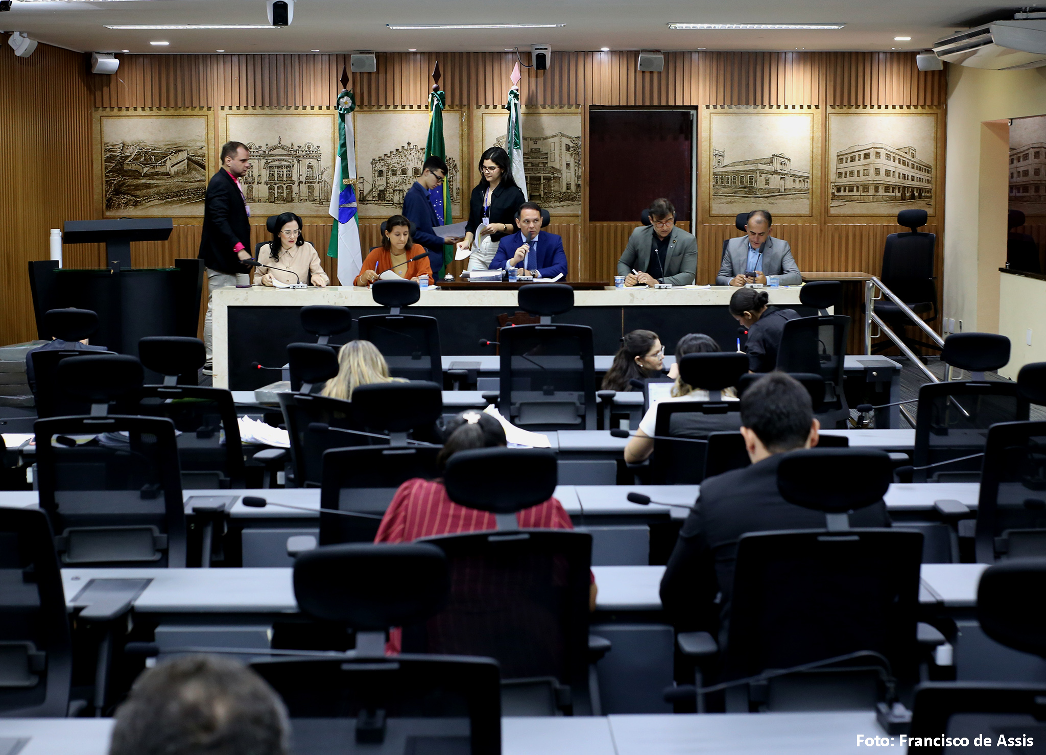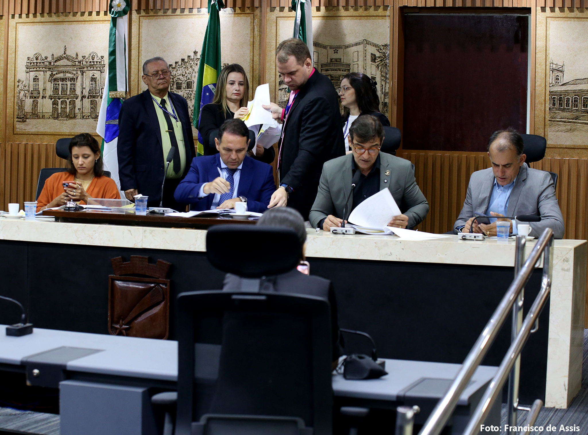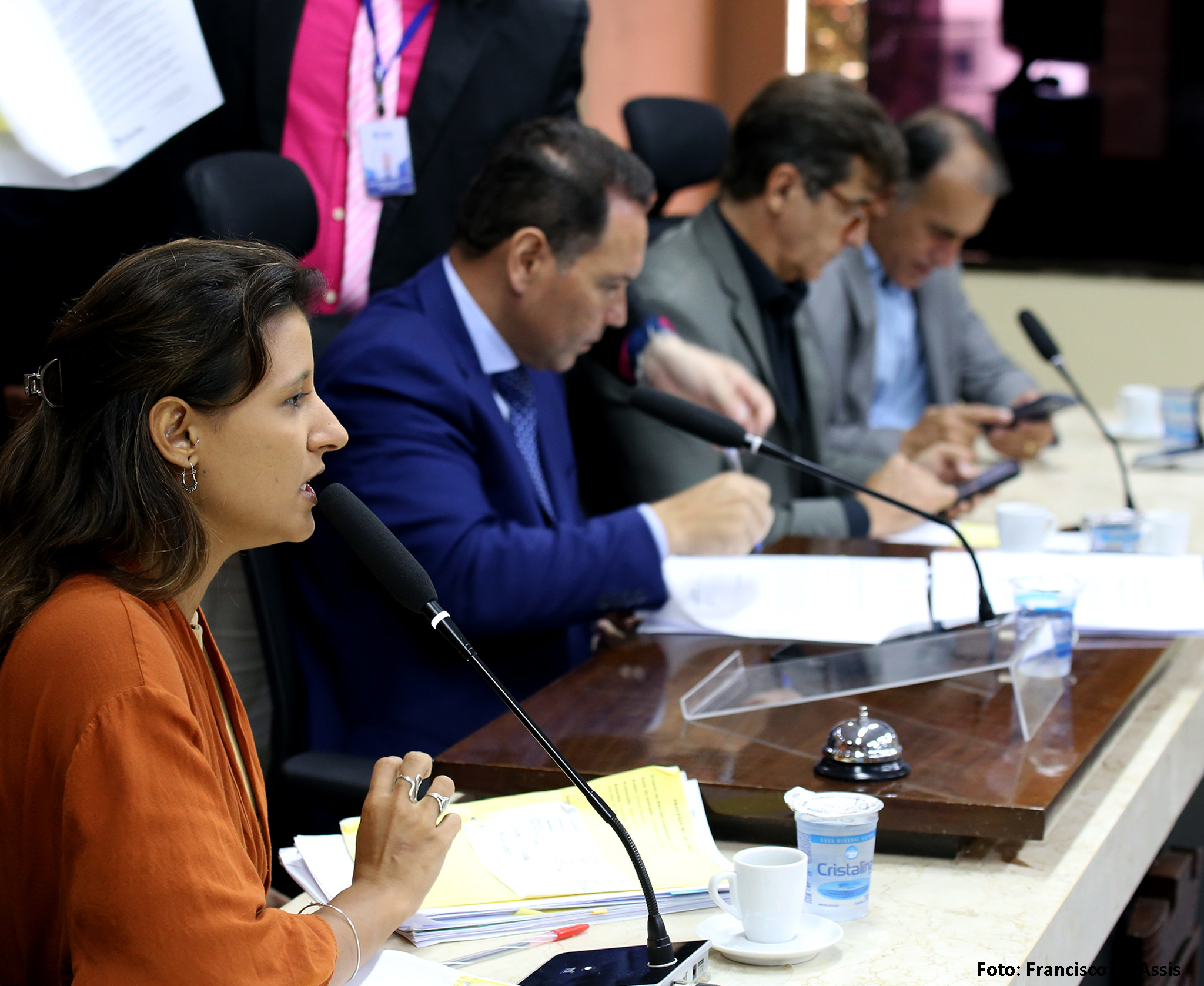 Além de Brisa Bracchi e de Kleber Fernandes, a reunião da Comissão de Legislação, Justiça e Redação Final contou, ainda, com a presença da vereadora Camila Araújo (União Brasil), e dos vereadores Fúlvio Saulo (Solidariedade) e Preto Aquino (Podemos).