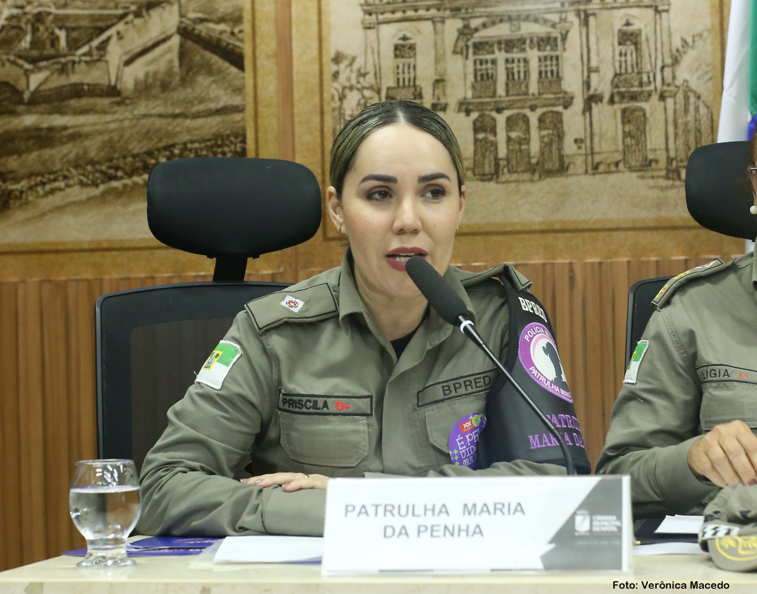 Na sequência, a Tenente da Polícia Militar do RN e coordenadora operacional da Patrulha Maria da Penha, Priscila Sales, informou que o trabalho tem sido eficaz na proteção de mulheres, com zero feminicídios entre as assistidas pela equipe. "O serviço cresceu e hoje possui 18 polos, cobrindo 167 municípios. Em caso de agressão, a mulher deve denunciar na delegacia, registrar ocorrência, solicitar medida protetiva e acompanhamento da patrulha. Denúncias podem ser feitas por qualquer pessoa, mesmo que não seja a vítima, através do 180 (Central de Atendimento à Mulher) ou 190 (emergência)".