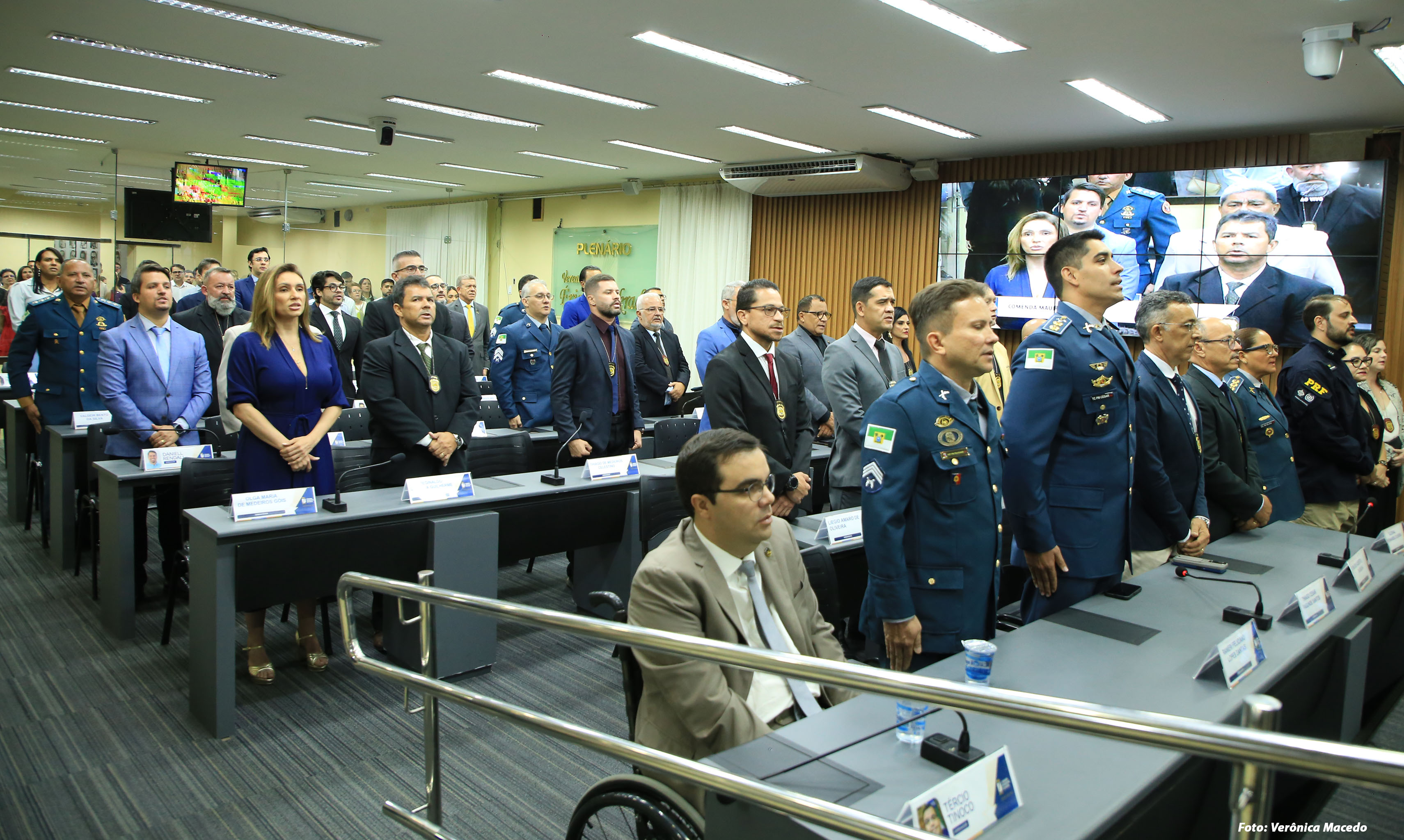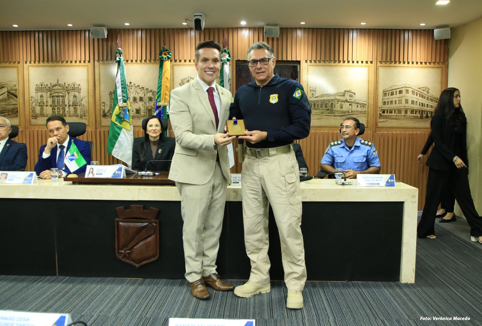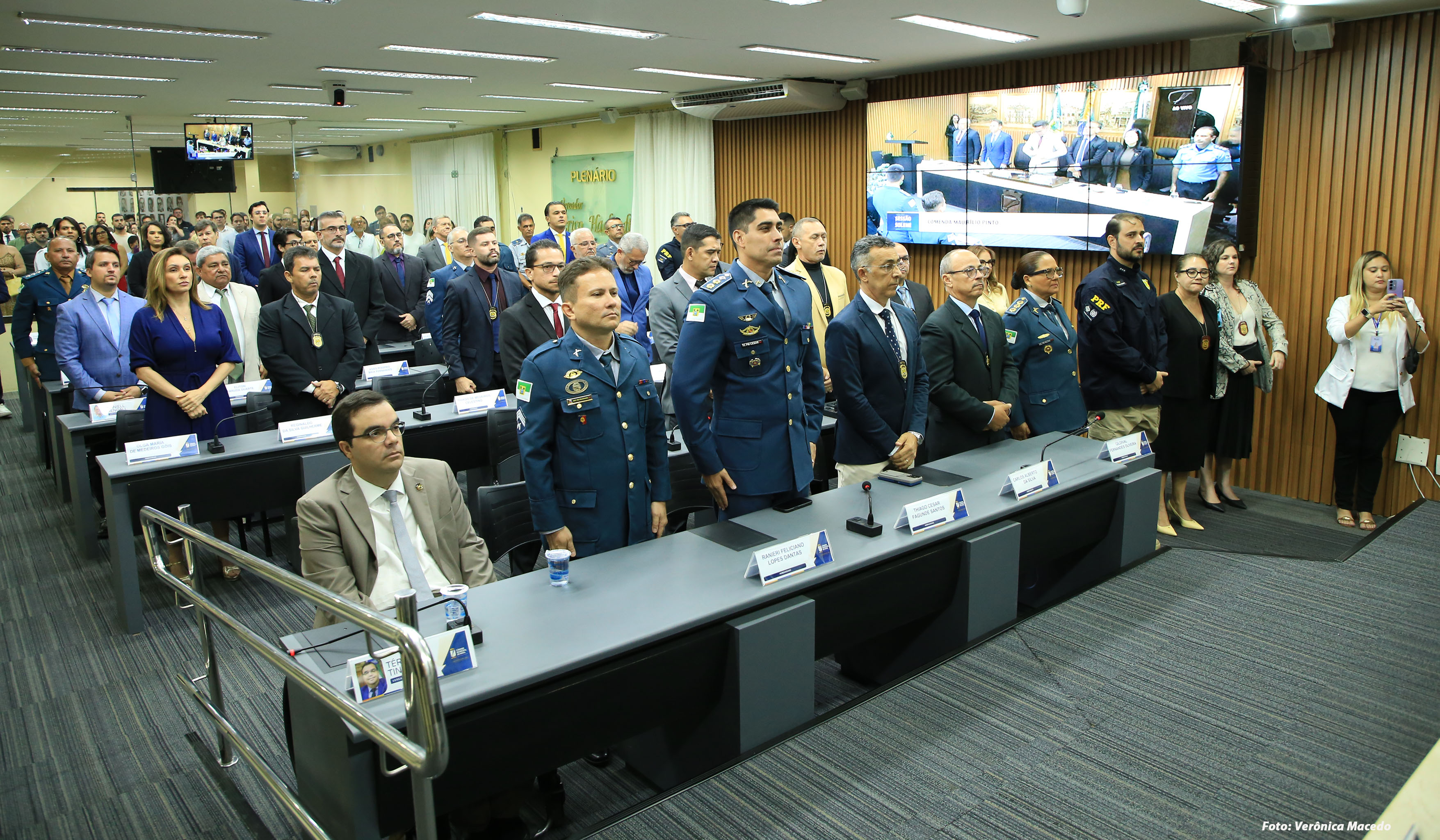 A Câmara Municipal de Natal realizou, nesta quarta-feira (22), sessão solene para a entrega da Comenda Bacharel Maurílio Pinto de Medeiros. A proposição foi da Mesa Diretora da Casa, e a solenidade homenageou 30 agentes de segurança das Polícias Civil, Militar e Rodoviária Federal e do Corpo de Bombeiros, em reconhecimento à atuação na defesa da segurança pública e na proteção da população.