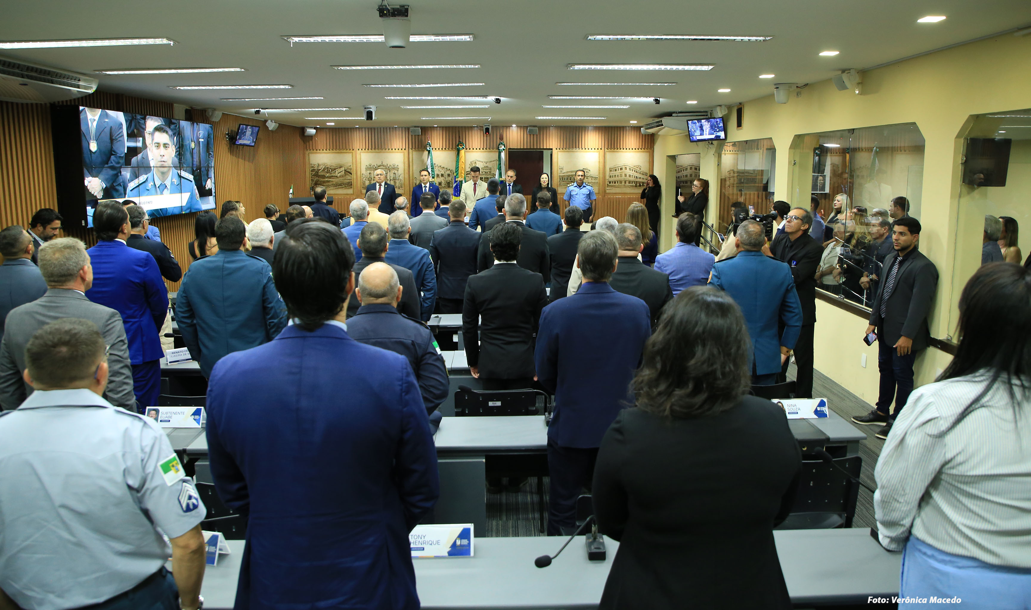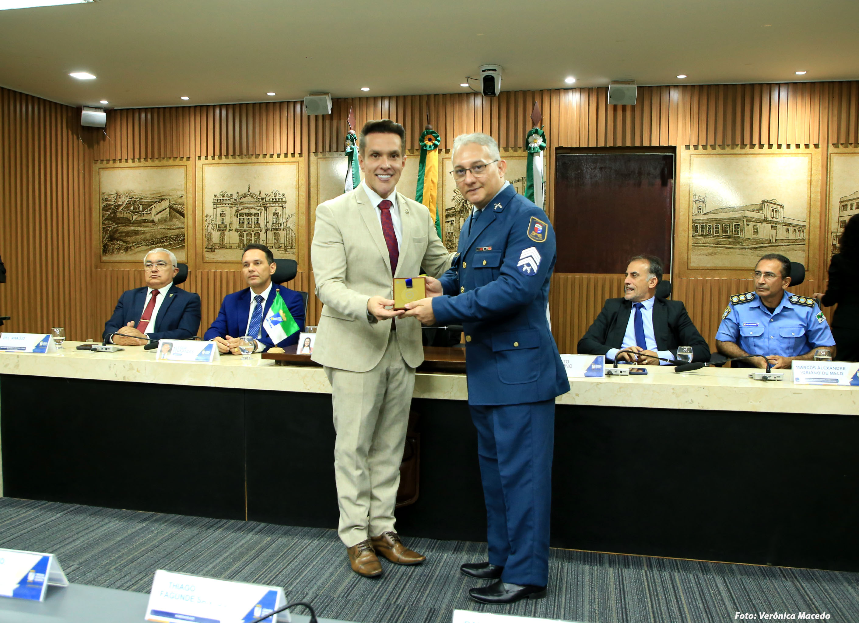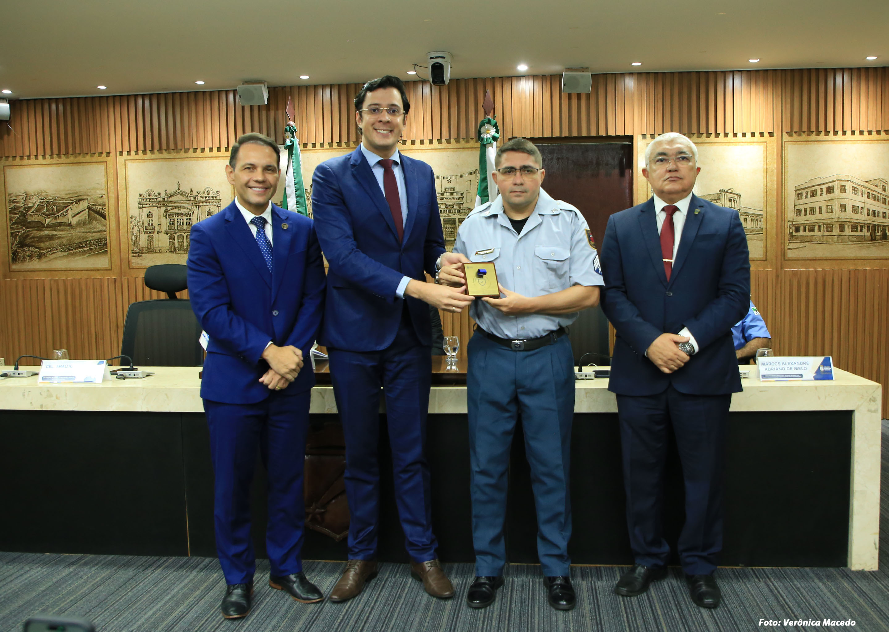 A Câmara Municipal de Natal realizou, nesta quarta-feira (22), sessão solene para a entrega da Comenda Bacharel Maurílio Pinto de Medeiros. A proposição foi da Mesa Diretora da Casa, e a solenidade homenageou 30 agentes de segurança das Polícias Civil, Militar e Rodoviária Federal e do Corpo de Bombeiros, em reconhecimento à atuação na defesa da segurança pública e na proteção da população.