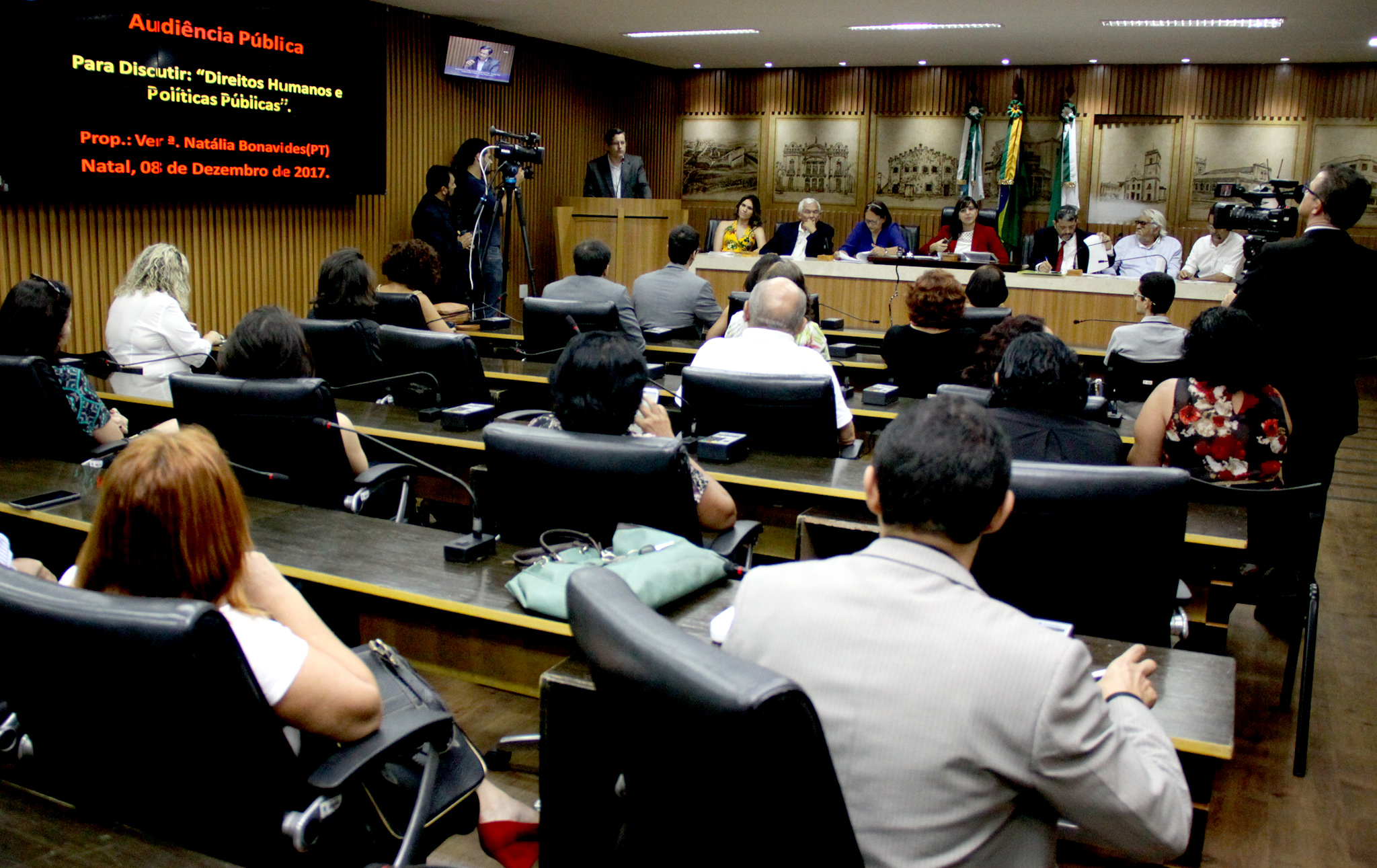 A Câmara Municipal de Natal realizou, na manhã desta sexta-feira (8), uma audiência pública em alusão ao Dia Internacional dos Direitos Humanos, que é comemorado no próximo dia 10 de dezembro. Durante o encontro, foram entregues os prêmios Estadual de Direitos Humanos Emmanuel Bezerra dos Santos e de Jornalístico de Direitos Humanos.